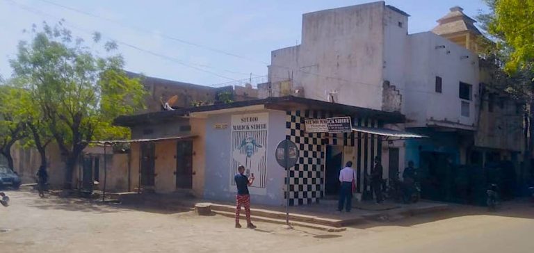 Malick Sidibé, l’un des plus illustres photographes du continent soulève triomphalement, sur la tête, un trophée. Il est heureux. Ses dents blanches magnifient son sourire. Vêtu d’un grand boubou, l’une des figures majeures de la photographie africaine donne un cachet spécial à cet endroit. Des bandes, en noir et blanc, verticales, ornent une partie de la façade principale. L’autre partie est peinte toujours en noir et blanc avec des damiers carrés. Au-dessus de la tête, une enseigne informe : Studio Malick Sidibé, photographe. Elle donne des précisions sur le numéro de rue, la porte (632), la boite postale (455 Bamako Mali), les numéros de téléphone et le e-mail. Oui, c’est effectivement là, le studio de « L’œil de Bamako ». Là, où il a travaillé jusqu’à sa mort en 2016.
