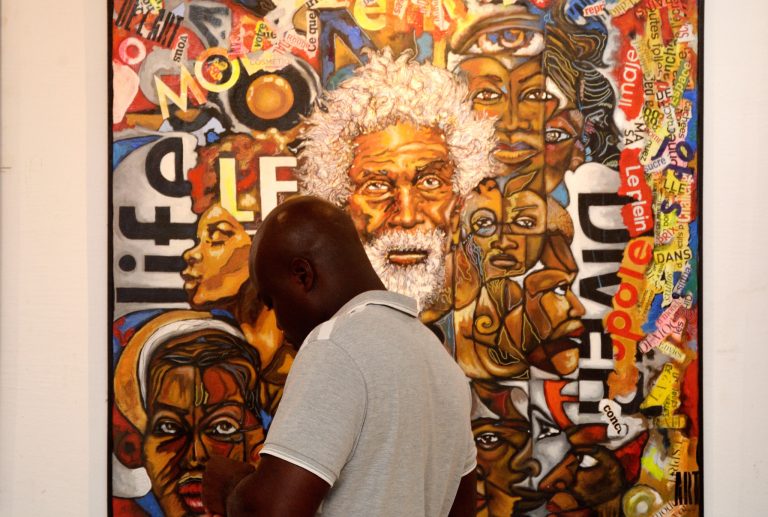 Les textes : Aboli Kann a beaucoup de chose à dire. Aussi bien à travers ses toiles qu’à travers ses textes. Pour lui, il faut « Cultiver l’écriture en Afrique pour laisser des traces de l’actualité ». Parti de ses premières amours, la bande dessinée, sa porte d’entrée dans la peinture, il utilise les magazines de jeunesse pour faire les collages. A côté de chaque toile, il laisse toujours un petit texte poétique. « C’est une sorte de notice, une clé qui montre le ressenti de l’artiste ». Un témoignage pour la postérité. « L’écrit, c’est ce qui reste. Ce qui transmet l’histoire », soutient Aboli Kann.