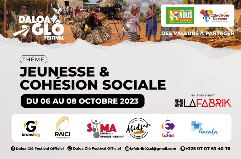 La ville de Daloa sera l’objet de toutes les attractions du 6 au 8 Octobre 2023. Elle connaîtra des journées bien remplies, aussi bien pour les volets ludiques que didactiques, par le truchement de la 2ème édition du Daloa Glô Festival. Cet événement à caractère social, artistique, touristique et culturel, mis sur les fonts baptismaux par l’agence La Fabrik, se veut être une plateforme de réflexion sur des problématiques liées à la jeunesse de Daloa et un cadre promotion des richesses culturelles et touristiques du département de Daloa.