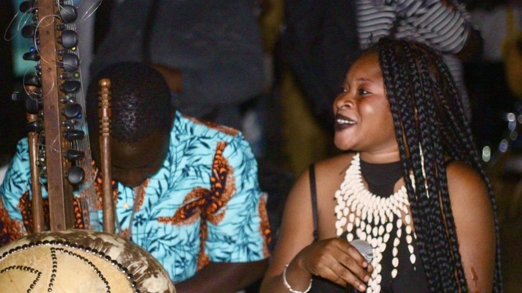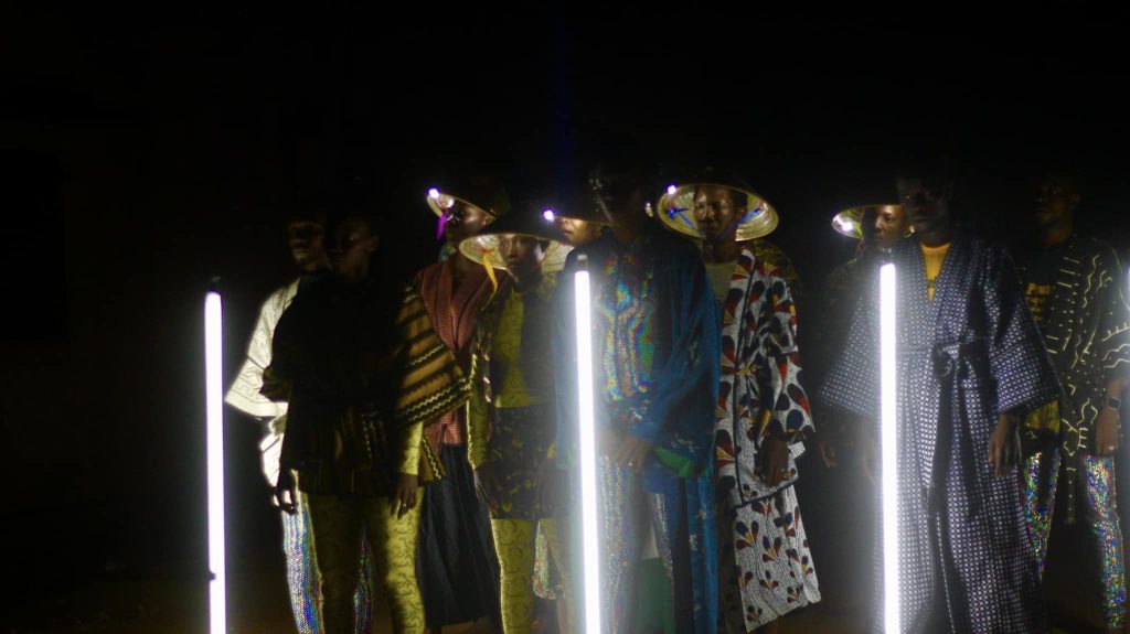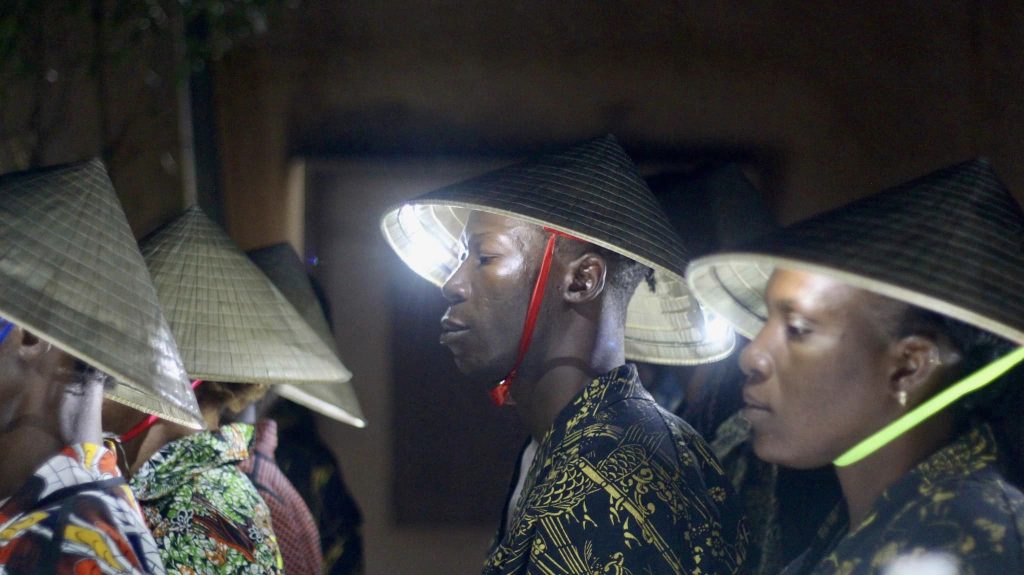 Ce soir, une partie de la rue 369 a été mise, volontairement, au noir. Une musique jouée en live (djembé et kora), est surplombée par la voix de Mamie Camara. La chanteuse avec une tonalité autant langoureuse que mélancolique interprète des titres du répertoire populaire bambara et surtout « Seydou » de l’icône Salif Kéita,. Les chansons plongent l’auditoire dans une atmosphère de « Sumu », moment de chant d’éloges des nobles et vaillants guerriers du mandé. Et l’ondulation des corps des danseurs/mannequins et aussi leurs acrobaties rend le moment unique.