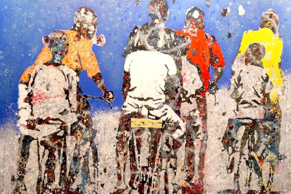 Le regard figé vers l’horizon, Gnohité scrute le néant. Ses pensées s’envolent comme des bulles. Baignées dans une tranquillité imposée par un bleu roi et des couleurs vives (jaune et rouge), il recherche en permanence un monde idéal pour les enfants. Face aux affres de la vie et aux dangers, l’horizon semble perdu pour les bambins. Du coup, il se rabat sur le passé. L’enfance, son enfance. Ce moment d’insouciance, de bonheur, de convivialité, de fraternité, d’amour vrai. Une période de cohésion, d’unité, qui rassemblait toute sorte de personnes : le sage, le surdoué, le perturbateur, le grognon, le leader, le faible, le bagarreur, le moqueur, le sale, le peureux… Les bandes d’enfants en joie, montant à plusieurs sur des bicyclettes, des partages de sourires, des provocations à tue-tête, des rires à n’en point finir.