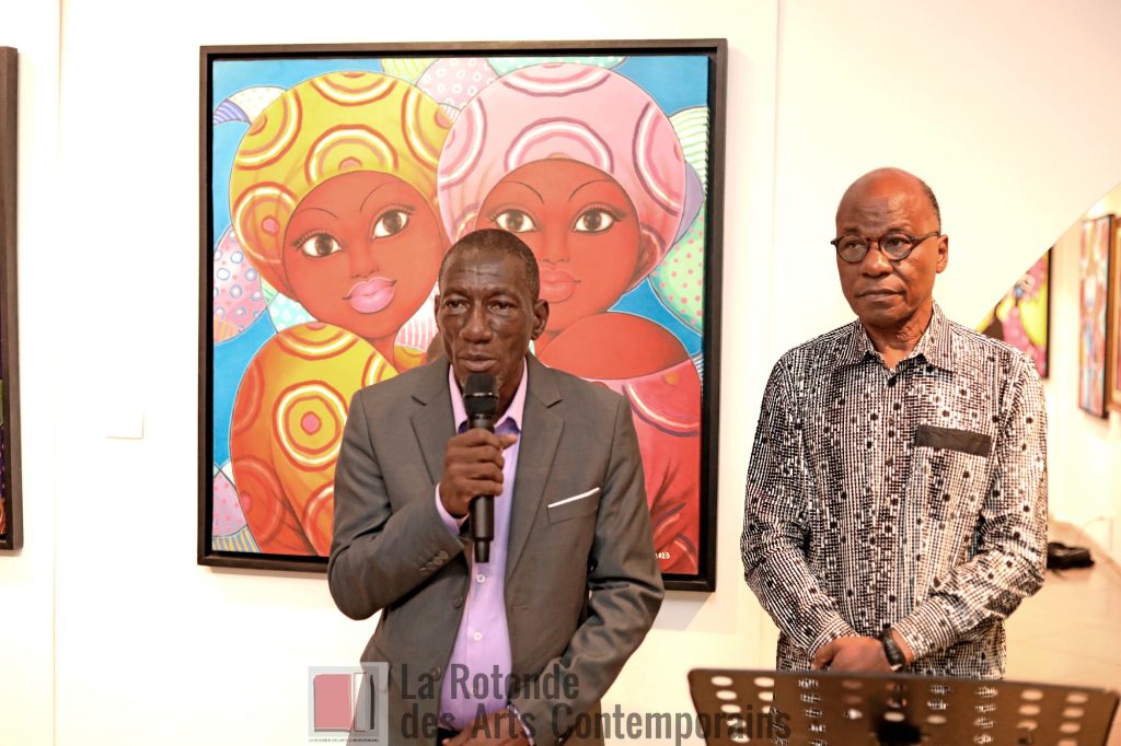 C’est une écriture qu’on reconnait parmi mille. Les couleurs chaudes illuminent les formes finement arrondies qui envahissent l’espace. L’ambiance est bon enfant, l’art est dans toute son expression. Le peintre Augustin Kassi, est de retour sur les cimaises de la Rotonde des arts contemporains au Plateau. Ce mercredi 04 décembre, à l’occasion de la 2e journée de la Biennale internationale des arts d’Abidjan (BINA), l’artiste, offre une nouvelle série d’œuvres qui épouse les codes de la contemporanéité tout en restant fidèle à son écriture de base. « Ses femmes rondes » sont omniprésentes. Mais pas que. Pour son come-back, dans cette exposition personnelle, l’ancien pensionnaire du Centre artistique d’Abengourou, matrice de la transmission de l’art dit naïf en Côte d’Ivoire, s’ouvre de nouveaux horizons. « Nous sommes heureux de proposer quelque chose qui vient de notre tréfonds en partage avec les autres », informe-t-il.